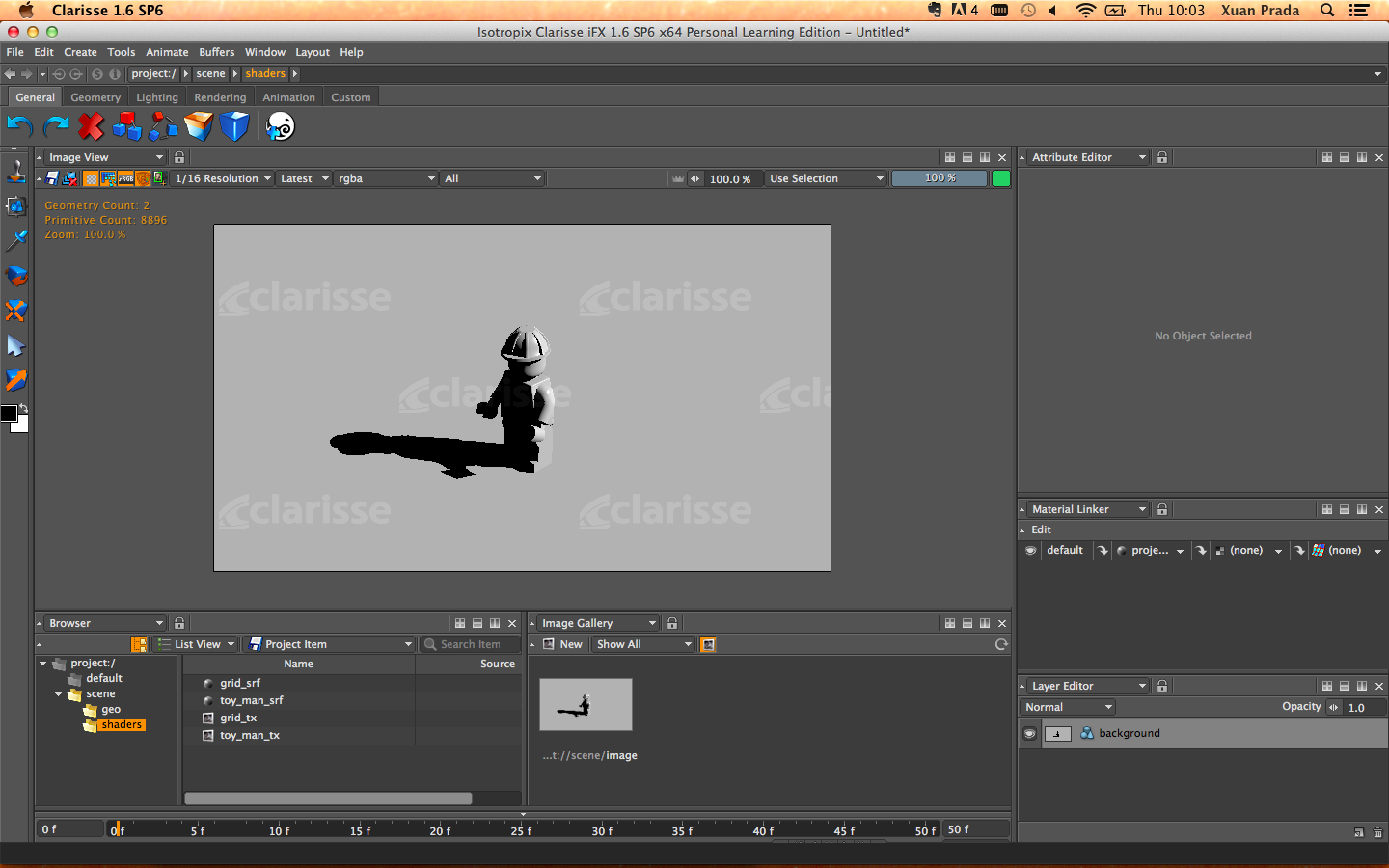 - In the geo context I imported the toy_man and the toy_truck models (.obj) and moved the grid from the main context to the geo context.